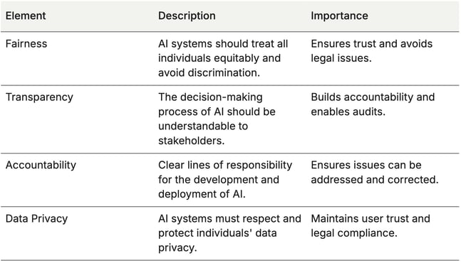 Here is a table illustrating the key elements of ethical AI in the marketplace: